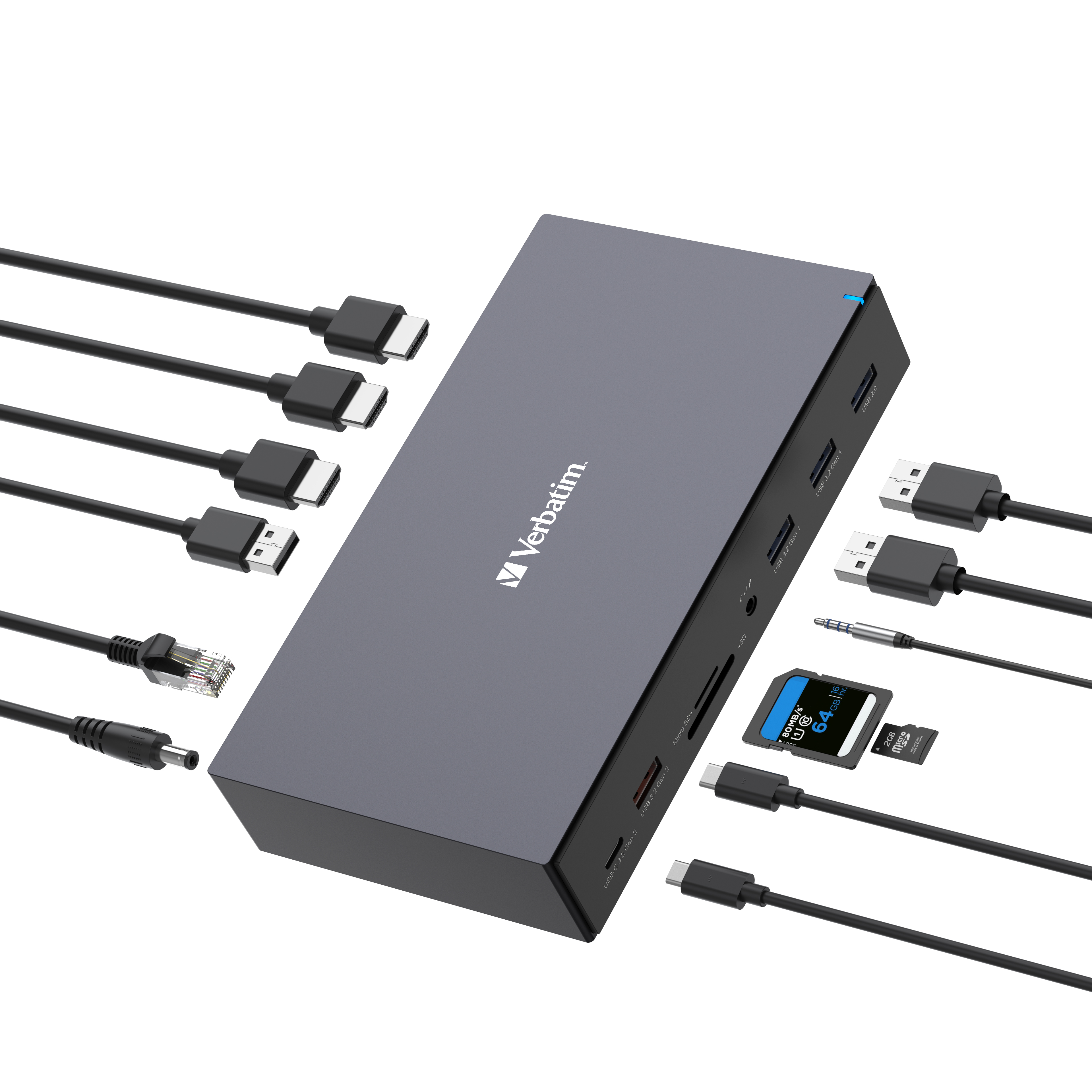 1 x HDMI, up to 8K@30Hz (VMM7100); 2 x HDMI, up to 4K@60Hz (DL-6950); 2 x DP, up to 4K@60Hz (DL-6950); 1 x RJ45, up to 1Gb/s; 1 x USB-A 3.1, up to 10Gb/s; 2 x USB-A 3.0, up to 5Gb/s; 2 x USB-A 2.0, up to 480Mb/s; 1 x USB-C 3.1, up to 10Gb/s 1 x SD 4.0; 1 x Micro SD 3.0; 1 x Audio jack; 1 x DC power, 20V/6A@120W; 1 x USB-C Host